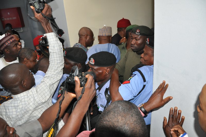 Alleged forgery: Photo Of Saraki, Ekweremadu, Two Others In The Dock + Saraki's Security Aides Attack Journalists In Court