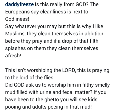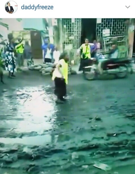 Multi-award winning popular Cool FM Lagos OAP, Daddy Freeze, has today, taken to his social media pages to share a video of a woman, supposedly a Lord Chosen member, dancing and praising God in a dirty mud.