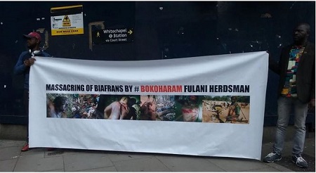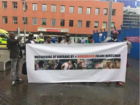 The Royal London Hospital White chapel in London, United Kingdom got an unusual group of visitors of pro-Biafra activities who wielded banners and placards with customized Biafra clothings to see President Muhammadu Buhari who is currently on an exhausted 10-day vacation abroad.
