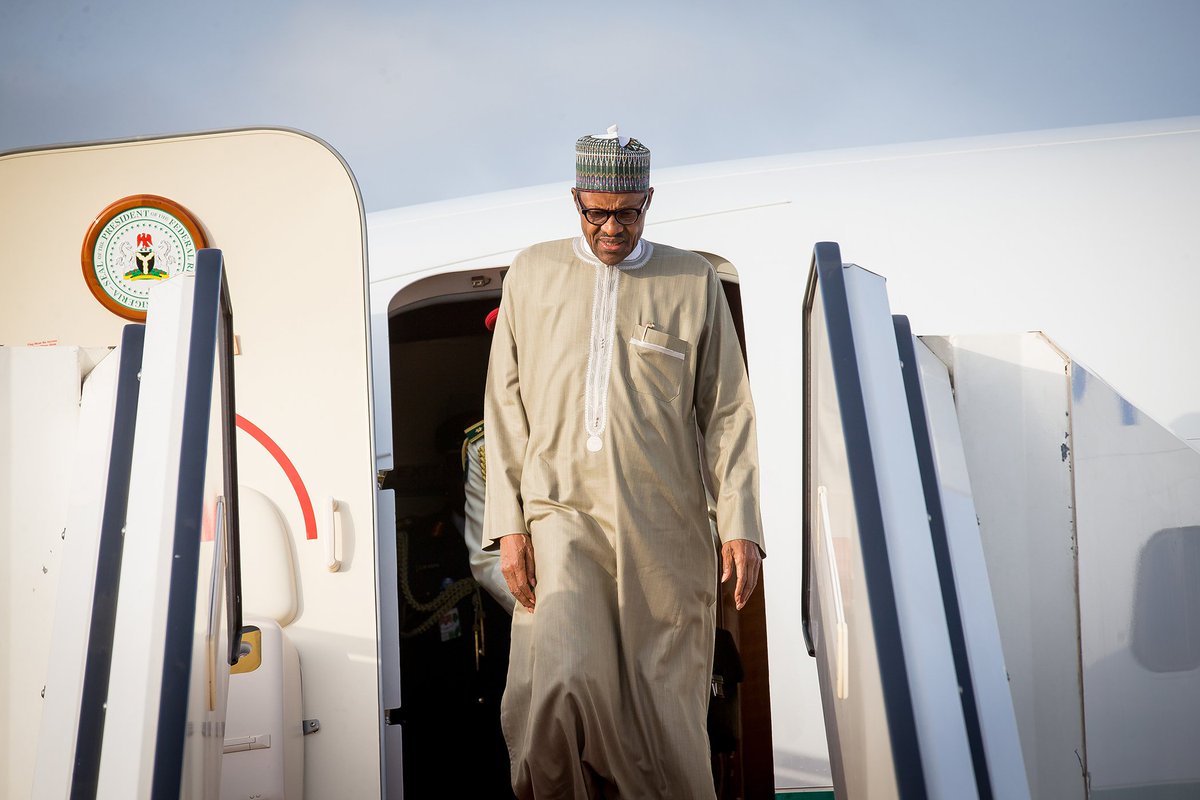 Nigeria's President Muhammadu Buhari has returned from the UK after abruptly traveling there to treat a nagging ear infection. The president and his entourage arrived the Presidential Wing of the Nnamdi Azikiwe Internation Airport around 6 PM Nigerian time.