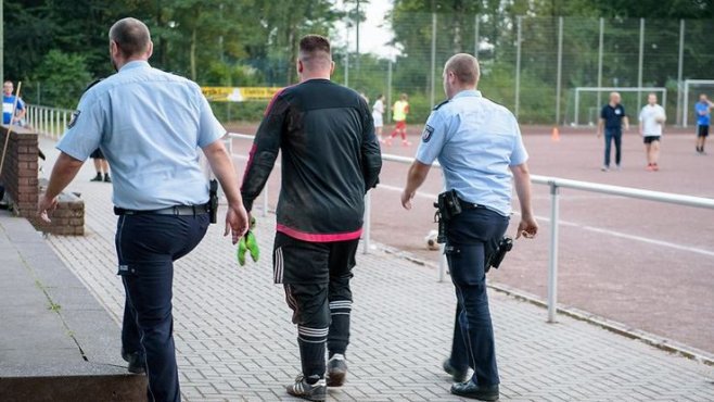 Marco Kwiotek, the 25-year-old goalkeeper who conceded the basket load of the goals, was arrested by police during a training session after his side, SV Vonderort lost to PSV Oberhausen.