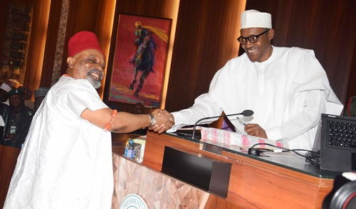 Buhari and Ngige during his swearing-in as minister few months ago in Abuja